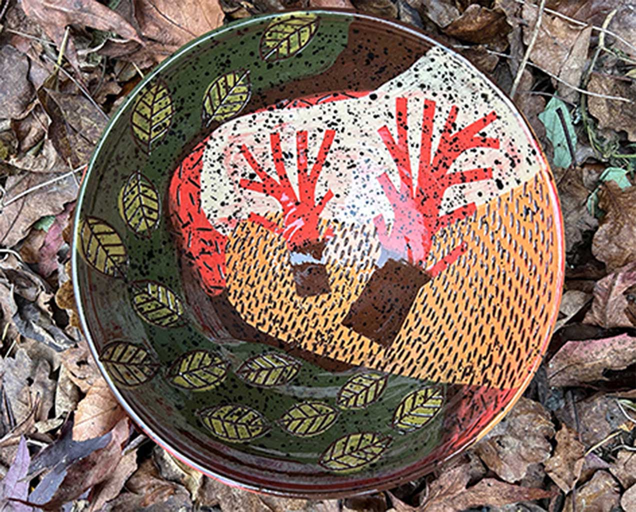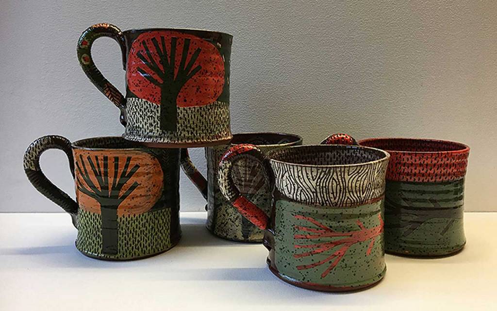 Ceramics has become the main material that she works with. Her main way of selling work is doing large ceramic shows, travelling around the country during the summer months and making the work during the winter.